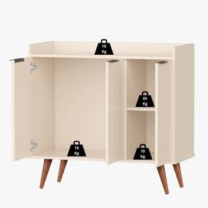 Características: Estrutura: 100 MDF 3 Portas Puxador estilo Cava Cross Pés em Madeira Maciça Tampo Suporta: 10kg Prateleira Suporta: 5kg