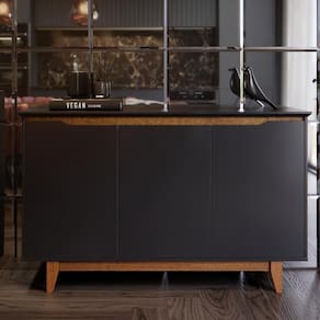 Com três compartimentos distintos, este buffet foi cuidadosamente projetado para oferecer uma variedade de opções de armazenamento de maneira organizada e sofisticada.