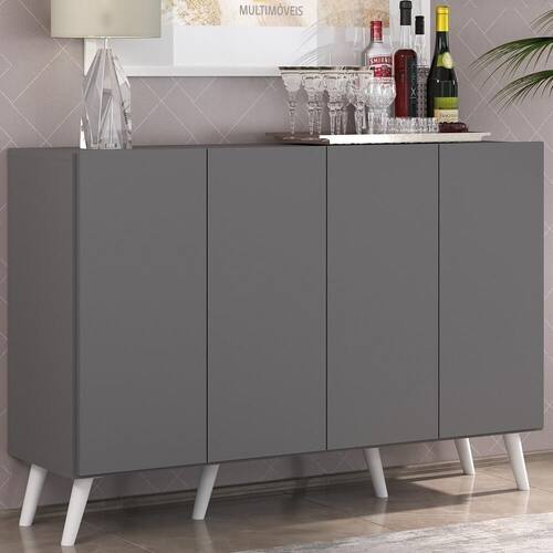 O Aparador Buffet 4 portas com Pés Retrô Veneza Multimóveis é produzido em MDP com acabamento acetinado (cerca de 20% de brilho), que garante maior durabilidade, facilidade na limpeza, além de um acabamento superior. Com 4 portas, possui um excelente espaço interno para organizar seus pertences (as prateleiras internas suportam 5 Kg cada e o tampo 10 Kg). Os pés retrô, em polipropileno, dão um charme especial ao móvel deixando-o com um visual leve e permitindo você compor um ambiente com ar vintage e moderno ao mesmo tempo. Seu design minimalista, torna o móvel muito versátil, podendo ser utilizado de diversas maneiras e em qualquer ambiente.