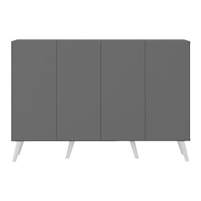 O produto será entregue desmontado e não disponibilizamos o serviço de montagem. Acabamento: Finish Foil | Cor: Grafite/Branco | Material: MDP | Referência do Modelo: MP3556 | Coleção: Veneza | Instruções de Cuidado: Limpar com pano seco para retirar o pó. Não utilizar produtos químicos ou abrasivos a limpeza. Não aplicar lustra móveis. | Sistema de Montagem: O produto acompanha manual de montagem juntamente com parafusos, pregos, cavilhas, entre outros. O produto será entregue desmontado e a Multimóveis não disponibiliza o serviço de montagem. | Produto Composto por: 1 aparador, 1 kit com 6 pés retrô, manual de montagem e kit ferragem. | Altura Montado: 85 | Largura Montado: 123 | Profundidade Montado: 32 | Tamanho (L x A x P): 123 x 85 x 32 | Portas: 4 | Gavetas: N/A | P