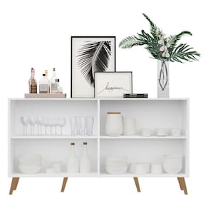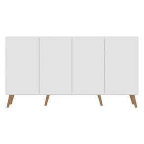 Aparador Buffet 4 Portas Retrô Veneza Multimóveis V3556 Branco/natural Branco/natural O Aparador Buffet 4 Portas Retrô Veneza Multimóveis é produzido em MDP com acabamento acetinado (cerca de 20% de brilho), que garante maior durabilidade, facilidade na limpeza, além de um acabamento superior. Com 4 portas, possui um excelente espaço interno para organizar seus pertences (as prateleiras internas suportam 5 Kg cada e o tampo 10 Kg). Os pés retrô, em polipropileno, dão um charme especial ao móvel deixando-o com um visual leve e permitindo você compor um ambiente com ar vintage e moderno ao mesmo tempo. Seu design minimalista, torna o móvel muito versátil, podendo ser utilizado de diversas maneiras e em qualquer ambiente. Conteúdo da Embalagem: 1 (um) aparador 1 (um) kit com 6 pés retrô