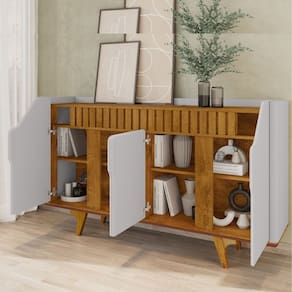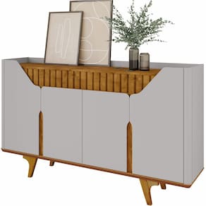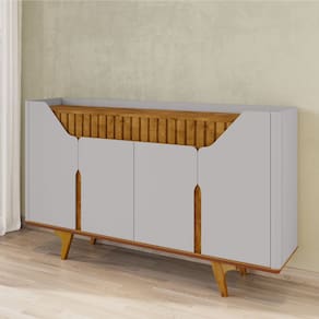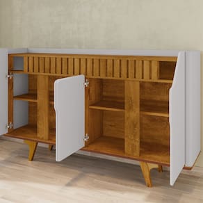 O Aparador Tâmisa é o móvel perfeito para sua casa! Ele possui design moderno que mescla suas curvas nas portas e laterais com detalhe em ripado real. Ele conta com Base em MDF de 25mm chanfrada em ângulo, portas em MDF chanfrada com design único que proporciona ao produto beleza inigualável. Cantos curvos feitos em MDF, amplo tampo e prateleira ajustável. Pés em madeira maciça que garantem ainda mais resistência e qualidade ao produto.