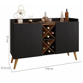 Estrutura: MDP, com tampo superior em formato de bandeja com espessura de 15 mmAcabamento: Pintura U.V, texturizado com escala de brilho FoscoPorta: Sim, 2 portas abrir com dobradiças metálicasGaveta: Não,Prateleira: Sim, 2 prateleiras internas com excelente espaço internoPés: Sim, 4 pés PVC estilo retroAdega: Sim, para armazenamento de ate 08 garrafas em estilo “X”Dimensões do produto montado