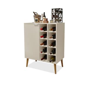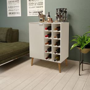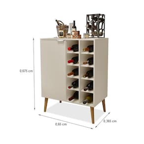 O Aparador Adega Miami é um móvel perfeito para aqueles que apreciam estilo e funcionalidade. Fabricado em MDP, possui pés retrô em madeira, 1 porta com dobradiças metálicas, puxador em alumínio, prateleira interna e adega com capacidade para 10 garrafas. Móvel com design único e amplo espaço interno para organização e para deixar seu cantinho mais apresentável e elegante.