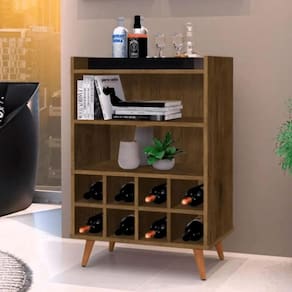 O Aparador Adega Paris é um móvel perfeito para aqueles que apreciam estilo e funcionalidade. Fabricado em MDP, possui pés retrô em madeira, 2 nichos e adega com capacidade para 8 garrafas. Móvel com design único e amplo espaço interno para organização e para deixar seu cantinho mais apresentável e elegante.