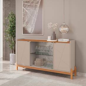 Com a mistura de elementos minimalista e retrô, o Aparador Buffet Bari é um móvel cheio de personalidade e indicado para deixar sua sala de jantar ou estar, ainda mais charmosa. Possui quatro portas, sendo duas em vidro temperado de 4mm e as outras duas em MDF de 15mm ambas com prateleiras internas. Estrutura de pés de madeira maciça. É ideal para armazenar aparelhos de jantar, travessas e copos. Seu tampo também pode ser utilizado como apoio para objetos decorativos, bebidas ou até mesmo como bancada para acomodar utensílios para servir drinques e petiscos.