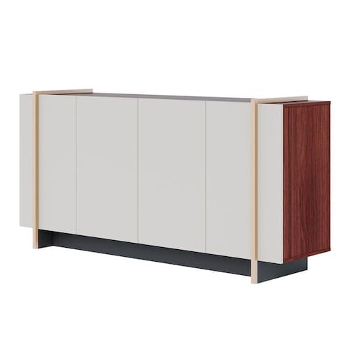 Além de um amplo espaço interno para guardar louças e demais aparelhos de jantar, possui um tampo amadeirado para objetos de decoração, taças, bebidas e que também pode servir de suporte para as refeições.