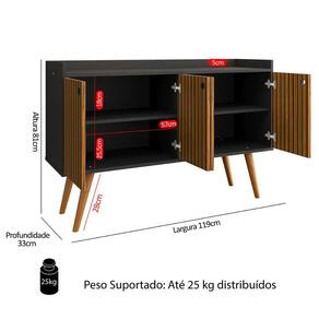 Ele conta com 4 portas, prateleiras internas e pés palito em madeira maciça, garantindo maior durabilidade ao produto. Também dispõe de um amplo tampo a qual pode ser utilizado para acomodar eletrodomésticos e itens decorativos.