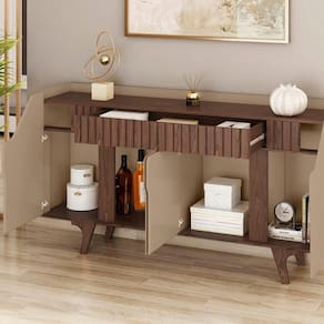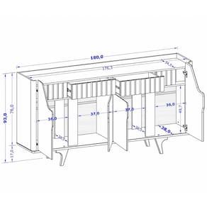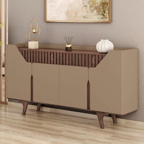 O Aparador Danúbio é o móvel que sua casa precisa! Ele possui design moderno que mescla suas curvas nas portas e laterais com detalhe em ripado real. Ele conta com Base em MDF de 25mm chanfrada em ângulo, portas em MDF chanfrada com design único que proporciona ao produto beleza charme e requinte como nenhum outro entrega! Cantos curvos feitos em MDF, amplo tampo e prateleira ajustável. Gavetas com corrediças telescópicas, sendo as frentes em ripado real. Pés em madeira maciça que garantem ainda mais resistência e qualidade ao produto.