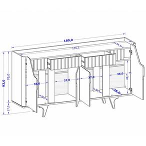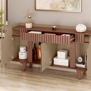 O Aparador Danúbio é o móvel que sua casa precisa! Ele possui design moderno que mescla suas curvas nas portas e laterais com detalhe em ripado real. Ele conta com Base em MDF de 25mm chanfrada em ângulo, portas em MDF chanfrada com design único que proporciona ao produto beleza charme e requinte como nenhum outro entrega! Cantos curvos feitos em MDF, amplo tampo e prateleira ajustável. Gavetas com corrediças telescópicas, sendo as frentes em ripado real. Pés em madeira maciça que garantem ainda mais resistência e qualidade ao produto.