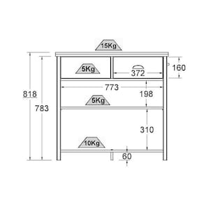 Possui 2 gavetas com corrediças metálicas que suportam até 5 kg cada.