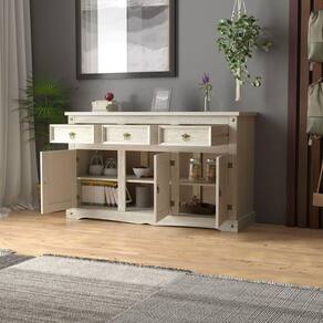 Aparador Buffet Em Madeira 3 Portas 3 Gavetas 150 Cm Patina Branca Elliottiis O Aparador Buffet da Elliottiis, com acabamento em Pátina Branca, é a combinação perfeita de estilo e funcionalidade para a sua casa. Com dimensões de 150x47x89 cm, este elegante buffet oferece ampla capacidade de armazenamento com suas 3 portas e 3 gavetas, ideal para organizar louças, talheres e outros itens essenciais. O acabamento em pátina branca não apenas destaca a beleza e a qualidade da madeira, mas também traz luminosidade e um toque de sofisticação ao ambiente. Com um design clássico, este móvel é uma peça central que se adapta a qualquer decoração, desde a mais moderna até a mais tradicional. Este Aparador Buffet é uma escolha excelente para quem deseja elevar o nível de sua decoração interior com um móvel prático e charmoso. Linha ou Coleção - Export Inclui manual de montagem - Sim Modelo - 112210006 Largura (cm) - 150 cm Profundidade (cm) - 47 cm Altura (cm) - 89 cm Material Principal - Madeira de pinus Cor - Branco Escala de Brilho - Fosco Material do Tampo - Madeira de pinus Material da Estrutura - Madeira de pinus Material dos Pés - Madeira de pinus Material do Puxador - Metálico Necessita Montagem - Sim Possui Gavetas - Sim Possui Vidro - Não Possui Rodízio - Não Possui Prateleiras - Sim Possui Portas - Sim Possui Adega - Não Possui Espelhos - Não Ambiente - Sala de Jantar Quantidade de Gavetas - 3 Quantidade de Prateleiras - 1 Quantidade de Portas - 3 Marca - Elliottiis Fabricante - Elliottiis Mais Informações - Material - Madeira de pinus;Cor - Branco;Acabamento: Patina;Fácil montagem;Acompanha instrução e kit de montagem;3 Portas;3 Gavetas;Puxadores em ouro velho;Acabamento UV; Recomendação de Uso - Esse produto não é indicado para uso o pó utilizando flanela seca, ou pano levemente umedecido com á caso de limpezas mais pesadas, utilizar flanela ou pano umedecido com água e sabão neutro. Não utilizar produtos químicos, esponjas de aço, escovas ou produtos tempo em tempo, reaperte os parafusos para garantir a estabilidade e durabilidade.Procure sempre levantar seu móvel para mudá.lo de . Empurrá.lo ou arrastá.lo pode entortar ou quebrar os pé caso de , desmonte seu móvel. Dessa forma evita que as peças se danifiquem devido ao balanço. Peso - 40 kg Origem do Produto - Garantia do Fabricante - 6 meses para vícios ou de fabricação EAN - 7898971420445 Aviso sobre o produto - Todas as imagens são meramente ilustrativas Regulamentações de produtos perigosos - Não aplicável Marca: Não Informado