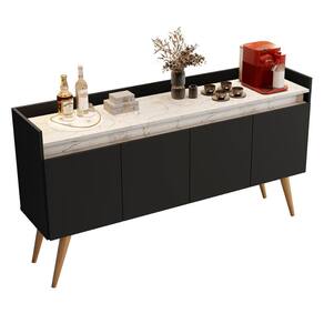 Aparador Buffet Gold Marmorizado 4 Portas Pés Madeira Maciça - Aparador Buffet 4 Portas