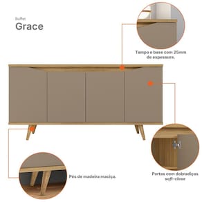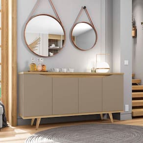 Material da estrutura: MDP/MDF e pés de madeira maciça com sapatas reguláveis e protetoras;