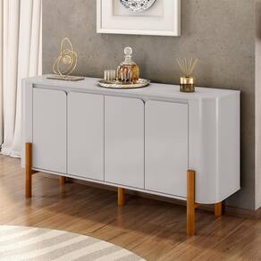 Possui 4 portas com dobradiças metálicas e fechamento soft close, 2 prateleiras internas e puxadores com detalhe curvo que valorizam o visual.