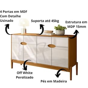 - Ampla Capacidade de Armazenamento: Com 4 portas, oferece bastante espaço para organizar utensílios, louças, bebidas e objetos decorativos.