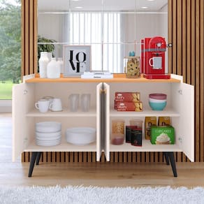 Aparador Buffet Kiev Cantinho Café 4 Portas Puxador Concha Prateleira Interna Organizadora Pés Retrô - Off White/Cinamomo - RPM Móveis - Off White