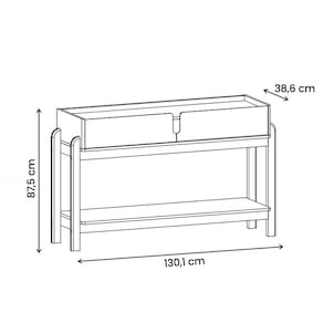 Material da estrutura: laterais em MDF 15mm, prateleira e base MDF 15mm, tampo e divisórias MDP 15mm com pés em madeira maciça;