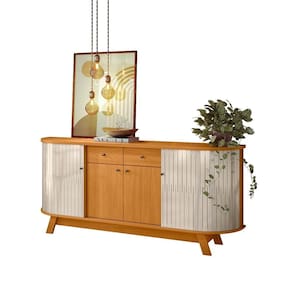 Buffet Mônaco é um produto perfeito para servir de apoio na sala de jantar, ou até mesmo inovar utilizando como um cantinho do café. Com medidas 1,83 de largura e 81,5 de altura. Seu design único e inovador, conta com 4 portas, 2 portas ao centro com dobradiças metálicas, e o que mais chama sua atenção nesse móvel são as outras 2 portas flexíveis nas laterais que deslizam acompanhando a curvatura da base e do tampo. O Buffet possui 2 gavetas com corrediças telescópicas e 3 prateleiras internas para facilitar a organização. Outro diferencial são os pés "palito" em estilo retrô que deixa o produto sofisticado. Confira as cores disponíveis e traga inovação e sofisticação ao seu lar.