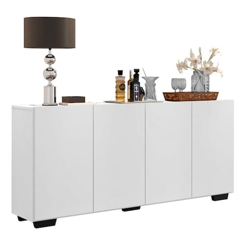 O Aparador Buffet 4 portas com Pés Quadrados Veneza Multimóveis é produzido em MDP com acabamento acetinado (cerca de 20% de brilho), que garante maior durabilidade, além de um acabamento superior. Com 4 portas, possui um excelente espaço interno para organizar seus pertences (as prateleiras internas suportam 5 Kg cada e o tampo 10 Kg). Os pés quadrados, em polipropileno, facilitam na hora da limpeza. Seu design minimalista, torna o móvel muito versátil, podendo ser utilizado de diversas maneiras e em qualquer ambiente.