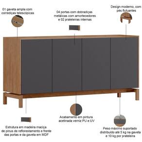 Fabricado em madeira maciça de altíssima qualidade, que garante resistência e durabilidade, esse balcão buffet oferece uma repartição interna estratégica, combinando 1 gaveta funcional e prateleiras espaçosas, perfeito para organizar talheres, louças e itens de servir com estilo. Além disso, o design contemporâneo dos pés flutuantes adiciona leveza e elegância ao ambiente, transformando momentos à mesa em experiências ainda mais especiais!