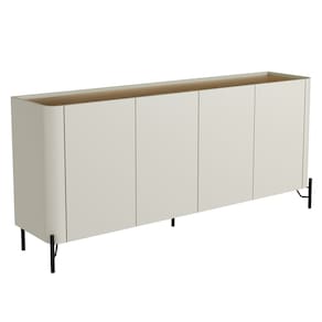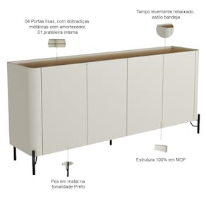 Fabricado em 100% MDF, esse buffet combina portas lisas e um design curvo - características do estilo orgânico - com pés metálicos industriais, criando um visual único e cheio de personalidade. Já com o tampo levemente rebaixado no estilo bandeja, esse aparador elegante oferece um espaço prático para exibir objetos decorativos ou servir drinks em encontros especiais. Por fim, seu amplo espaço interno garante organização sem comprometer a elegância, perfeito para guardar louças, toalhas ou itens de decoração.