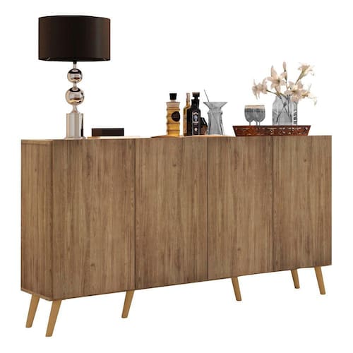 O Aparador Buffet 4 portas com Pés Retrô Veneza Multimóveis é produzido em MDP com acabamento acetinado (cerca de 20% de brilho), que garante maior durabilidade, facilidade na limpeza, além de um acabamento superior. Com 4 portas, possui um excelente espaço interno para organizar seus pertences (as prateleiras internas suportam 5 Kg cada e o tampo 10 Kg). Os pés retrô, em polipropileno, dão um charme especial ao móvel deixando-o com um visual leve e permitindo você compor um ambiente com ar vintage e moderno ao mesmo tempo. Seu design minimalista, torna o móvel muito versátil, podendo ser utilizado de diversas maneiras e em qualquer ambiente.