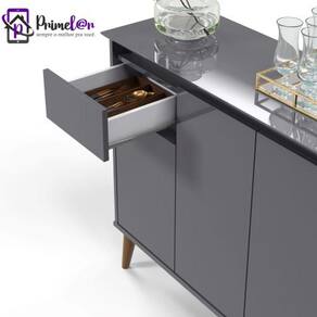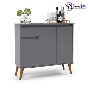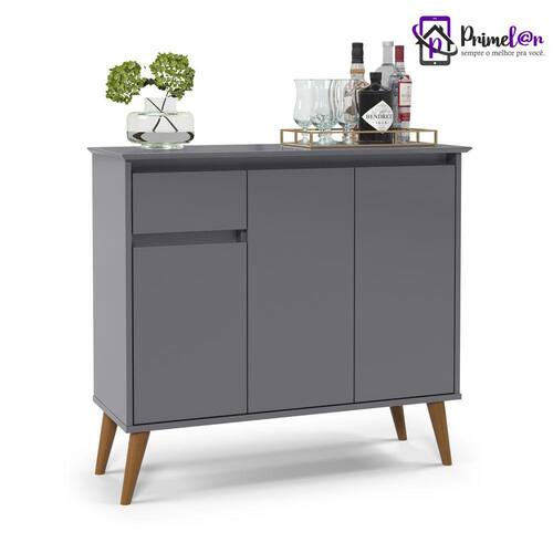 Aparador Buffet Retrô Pés Madeira 3 Portas E Gaveta Veneza - Cinza