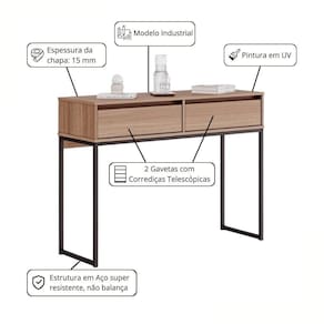 Feito em MDP com acabamento bordas em ABS. Estrutura em aço com pintura EPOXI nas cores preto.