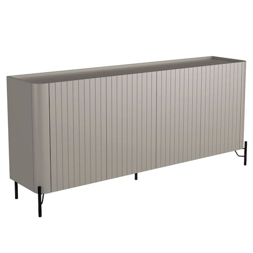 Fabricado em 100% MDF, esse buffet combina portas lisas e um design curvo - características do estilo orgânico - com pés metálicos industriais, criando um visual único e cheio de personalidade. Já com o tampo levemente rebaixado no estilo bandeja, esse aparador elegante oferece um espaço prático para exibir objetos decorativos ou servir drinks em encontros especiais. Além disso, o detalhe da porta Brise realça a beleza, ao passo que cria um efeito de textura ao balcão buffet. Por fim, seu amplo espaço interno garante organização sem comprometer a elegância, perfeito para guardar louças, toalhas ou itens de decoração.