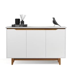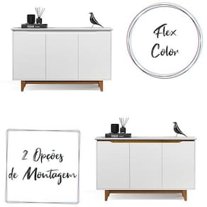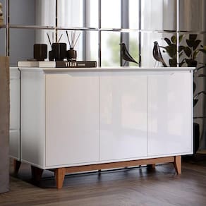 Aparador Buffet Sala Flow Com 3 portas Pés Madeira Maciça - Branco