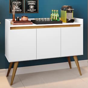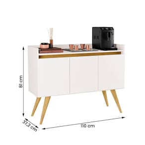 Aparador Buffet Sala Gold 3 Portas com Pés de Madeira Maciça - Branco | Marrom