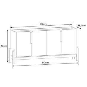 Marca: Casa D; Linha: Sala; Modelo: Buffet Lizz 170; Material da estrutura: MDP 15 mm, MDF 15 mm e 25 mm com pés de madeira maciça; Acabamento: Pintura Print Wood; Altura: 79 cm; Largura: 170 cm; Profundidade: 38,5 cm; Quantidade de portas: 04, com sistema Soft-Close (fechamento macio); Tipo de dobradiças: Metálicas (Soft-Close); Quantidade de gavetas: Não se aplica; Tipo de corrediças: Não se aplica; Com puxador: Sim, detalhe curvo; Material do puxador: Embutido; Quantidade prateleiras: 02; Peso suportado: 50 kg; Requer montagem: Sim (kit montagem incluso); Condição do item: Novo; É kit: Não; Altura da embalagem: 17,3 cm; Largura da embalagem: 41 cm; Comprimento da embalagem: 165,5 cm; Peso: 46,3 kg; Embalagem do envio: Papelão e plástico. Informações adicionais: - Os objetos que ambientam as fotos não acompanham o produto; - O produto será entregue desmontado; - É de inteira responsabilidade do cliente a montagem do produto e/ou instalação, custos de transporte por escadas e/ou elevadores, guincho ou içamento, assim como possíveis irregularidades provenientes de manuseio inadequado; - Embora o produto acompanhe o manual de montagem, verifique a complexidade antes de decidir montá-lo sozinho, recomendamos que contrate um profissional de sua confiança; - Fique atento, nossas cores podem sofrer alterações dependendo do seu monitor; - ANTES DE MONTAR O SEU PRODUTO, certifique-se que todas as instruções dispostas no manual, bem como todas as ferragens descritas, estejam presentes dentro da embalagem. Verifique se há alguma peça danificada, caso esteja, prestaremos a devida assistência dentro do prazo da garantia.