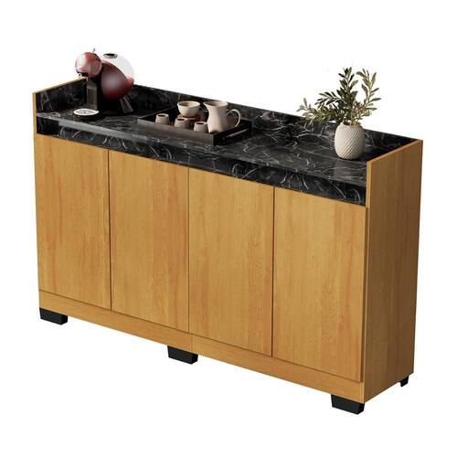 Aparador Buffet Sala Lorde Marmorizado 4 Portas - Marrom | Preto