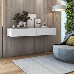 Com linhas modernas e acabamento clean, o aparador suspenso é a escolha perfeita para quem busca sofisticação com funcionalidade. As duas gavetas amplas e discretas mantêm tudo organizado, sem abrir mão do estilo.