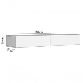 Dimensões:Altura: 20 cm | Largura: 110 cm | Profundidade: 37 cmGavetas (cada): Altura: 10,5 cm | Largura: 47 cm | Profundidade: 30 cmMaterial: MDF/MDP