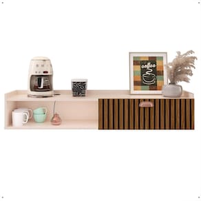 O Aparador Suspenso Decor une praticidade e estilo, sendo a escolha perfeita para otimizar ambientes compactos. Seu design minimalista apresenta um nicho e uma porta discreta, ideais para organizar pequenos objetos ou exibir itens decorativos com sofisticação. Versátil e funcional, é adequado para salas, cozinhas ou áreas de café, contribuindo para um espaço organizado e elegante.