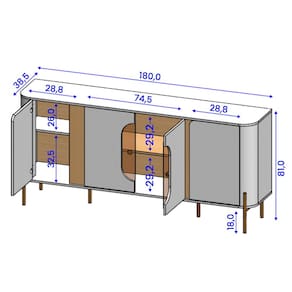 Com 180 cm de largura, oferece amplo espaço para organizar e decorar, unindo elegância e funcionalidade em um só móvel.