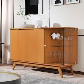 Com portas bem distribuídas, incluindo uma de vidro com prateleira elegante, é ideal para organizar utensílios e expor taças com estilo.