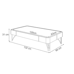 Dimensões da mesa de centro: 132 cm (L) x 31 cm (A) x 66 cm (P);