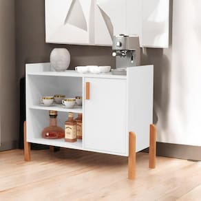 Contém uma portas com dobradiças e uma prateleira. Oferecendo essas funções todas, o seu Cantinho do Café pode ser na cozinha, na sala de jantar ou até mesmo no seu local de trabalho.