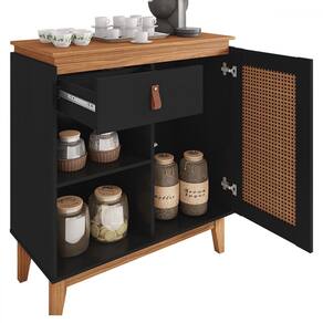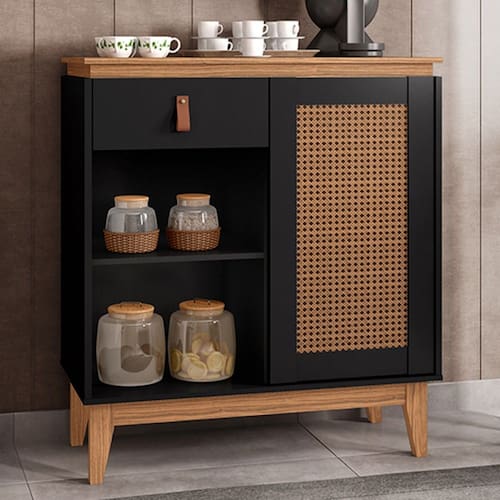 O(a) Aparador Café Gante 1 Porta 1 Gaveta Preto/Noce - Pnr Móveis é produzido em MDP na escala de brilho Semi-Brilho, e possui um grau de dificuldade de montagem: Médio.