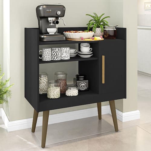 O(a) Aparador Café Ii 1 Porta 1 Prateleira Preto Fosco - Móveis Bechara é produzido em MDP na escala de brilho Brilhante, e possui um grau de dificuldade de montagem: Médio.