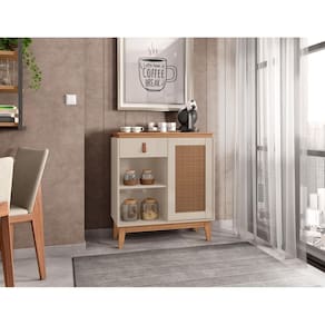 O Aparador Café Rubi chegou para proporcionar ao consumidor! Flexibilidade no uso, ele permite ser utilizado para dividir ambientes. Inovador e com design vintage, ele chegou proporcionando qualidade para o consumidor, cheio de estilo, compacto e com design moderno, ele facilitará sua organização embelezando ainda mais sua espaço! Porta moldurada com pintura 3D palhinha, e com sistema de abertura por toque (push-open). Contém 1 Gaveta com amplo espaço com corrediças telescópicas e puxador de alça de revestimento sintético. Pés em madeira maciça com feltro, acabamento requintado.