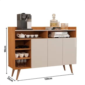 Organize melhor o espaço com o Buffet Celta. Resistente e feito com materiais de qualidade em MDP e MDF, ele deixará tudo no lugar certo, mas sem abrir mão do estilo, do charme e do bom gosto. Deixe seu lar arrumado e moderno. Possui portas com dobradiças metálicas, 3 prateleiras e pés de madeira.