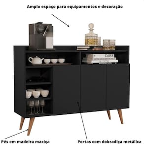 Organize melhor o espaço com o Buffet Celta. Resistente e feito com materiais de qualidade em MDP e MDF, ele deixará tudo no lugar certo, mas sem abrir mão do estilo, do charme e do bom gosto. Deixe seu lar arrumado e moderno. Possui portas com dobradiças metálicas, 3 prateleiras e pés de madeira.