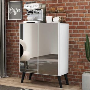 O Aparador Cantinho do Café com Espelho e Pés Retrô 2 Portas Multimóveis é produzido em MDP com acabamento acetinado (cerca de 20% de brilho), que garante maior durabilidade, facilidade na limpeza, além de um acabamento superior. Com 2 portas, possui um excelente espaço interno para organizar louças, bebidas e demais objetos (a prateleira interna suporta 8 Kg e o tampo 9 Kg). Os pés retrô, em polipropileno, dão um charme especial ao móvel deixando-o com um visual leve e permitindo você compor um ambiente com ar vintage e moderno ao mesmo tempo. Os detalhes com espelhos nas portas deixam o móvel mais requintado, e charmoso. Os espelhos são de vidro (o que evita que a imagem fique distorcida) e lapidados, ou seja, passam por um processo para que as bordas não fiquem cortantes, o que garante maior segurança. Os amantes de café poderão deixar seu cantinho mais prático e aconchegante para curtir os melhores momentos com os amigos e família, saboreando um delicioso cafezinho.