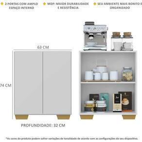 Com 2 portas, possui um excelente espaço interno para organizar louças, bebidas e demais objetos (a prateleira interna suporta 8 kg e o tampo 9 kg). Os pés quadrados, em polipropileno, facilitam na hora da limpeza. Os amantes de café poderão deixar seu cantinho mais charmoso e prático para curtir os melhores momentos com os amigos e família, saboreando um delicioso cafezinho.