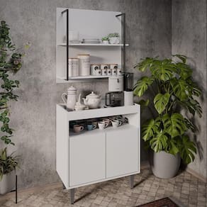 Com o Aparador Cantinho do Café e Painel 2 Prateleiras Flora Z34 Branco, da Mpozenato, estilo e funcionalidade se encontram para deixar o seu ambiente acolhedor e cheio de personalidade.