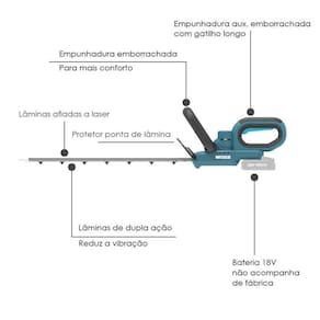 Equipado com lâmina de dupla ação, proporciona um corte eficiente e preciso em todos os seus trabalhos de jardinagem; Possui lâminas de dupla ação para reduzir a vibração; A sua empunhadura principal é emborrachada; As lâminas de corte são afiadas a laser; Empunhadura auxiliar com gatilho longo; Protetor de ponta de lâmina e espaço para armazenamento na vertical.
